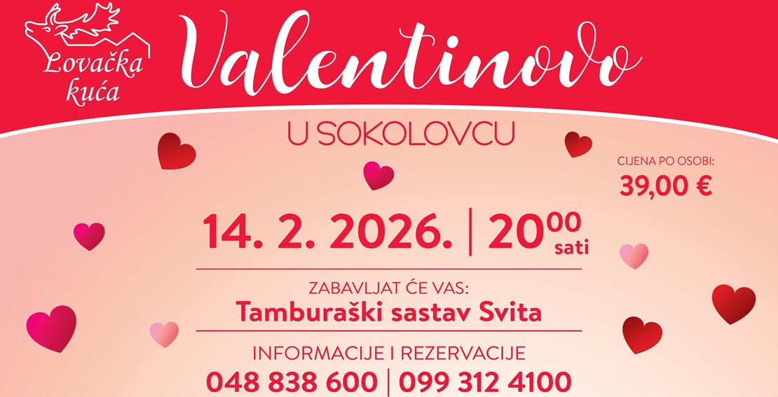 Pozivamo vas da Valentinovo provedete u ugodnoj i romantičnoj atmosferi KTC Lovačke kuće Sokolovac uz pomno pripremljen meni i opuštenu glazbenu pratnju.